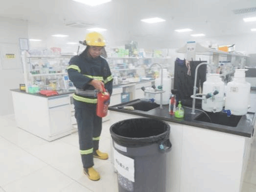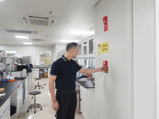 演习正式开始后,科研楼南七楼模拟着火。楼哲丰副院长率先触发手动报警,并和周边老师形成第一灭火力量。消控室老师迅速赶来现场确认情况后向学校监控中心报警,并协助灭火。总指挥胡雪知老师发出人员疏散指令后,消控室立即输出消防广播,启动电梯紧急迫降。科研平台管理老师引导师生从消防楼梯安全有序疏散。指挥员同时命令灭火行动组快速到达火灾现场形成第二灭火力量,迅速控制火情。