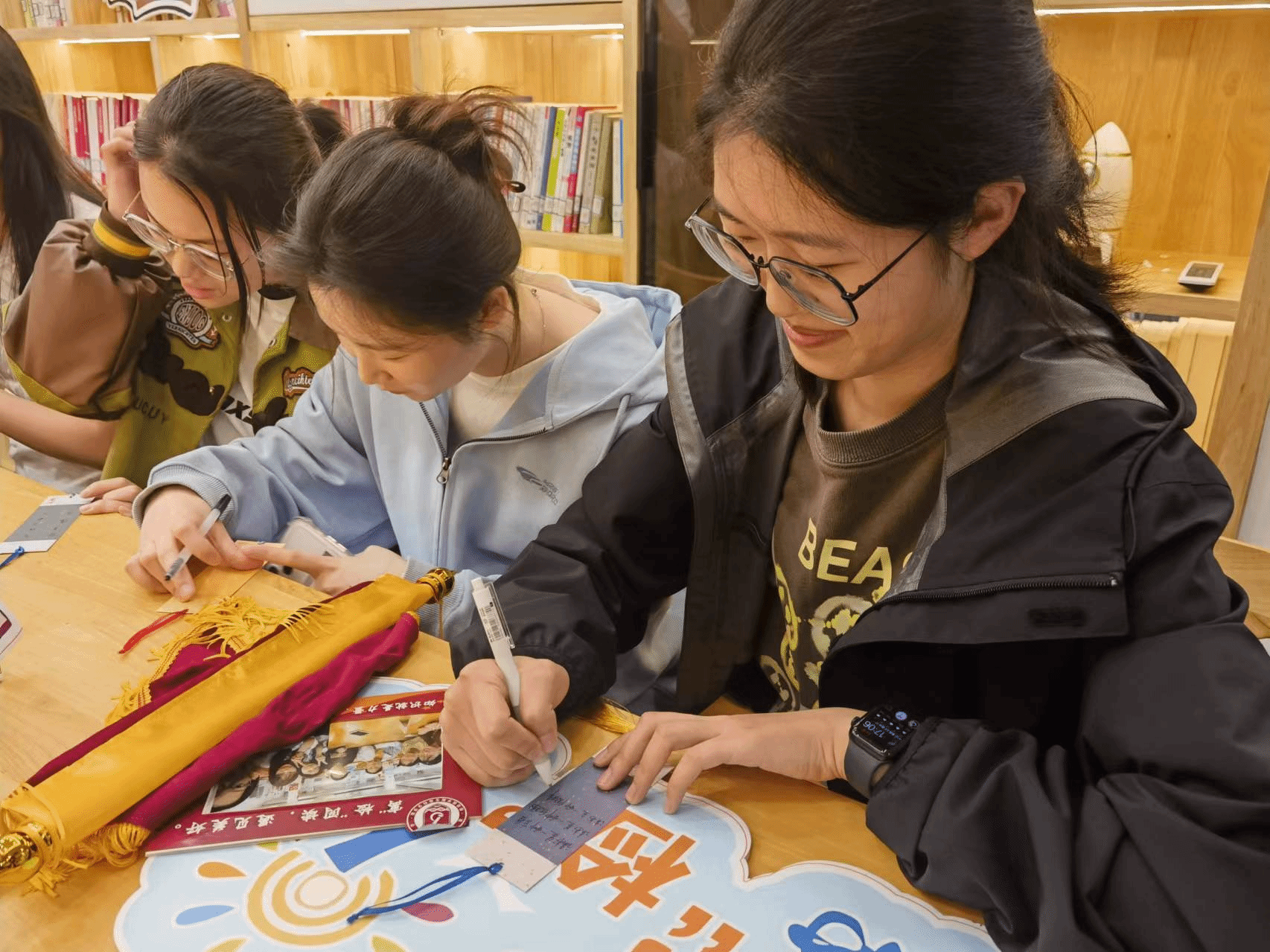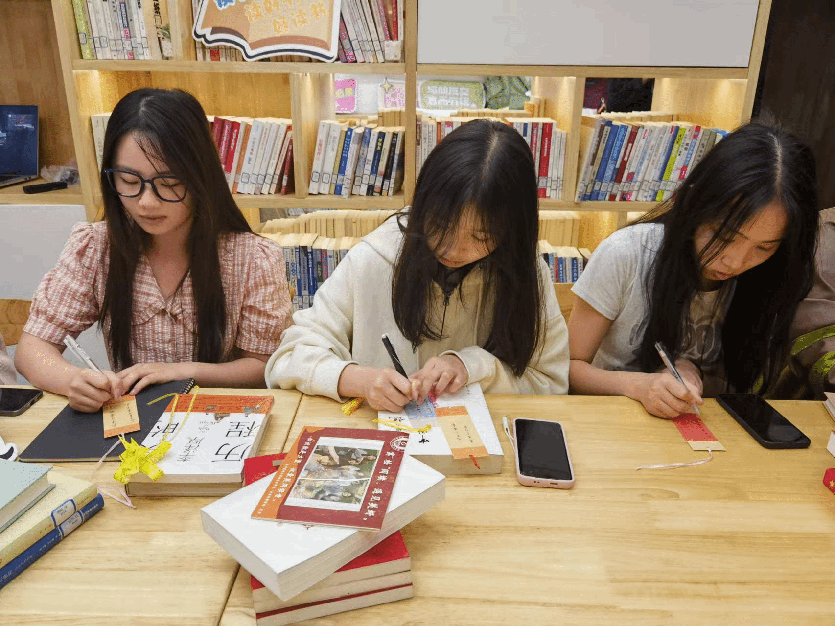 最后,同学们在书签上写下自己最喜爱的一句话,赠给书友,希望能共享阅读,遇见美好。