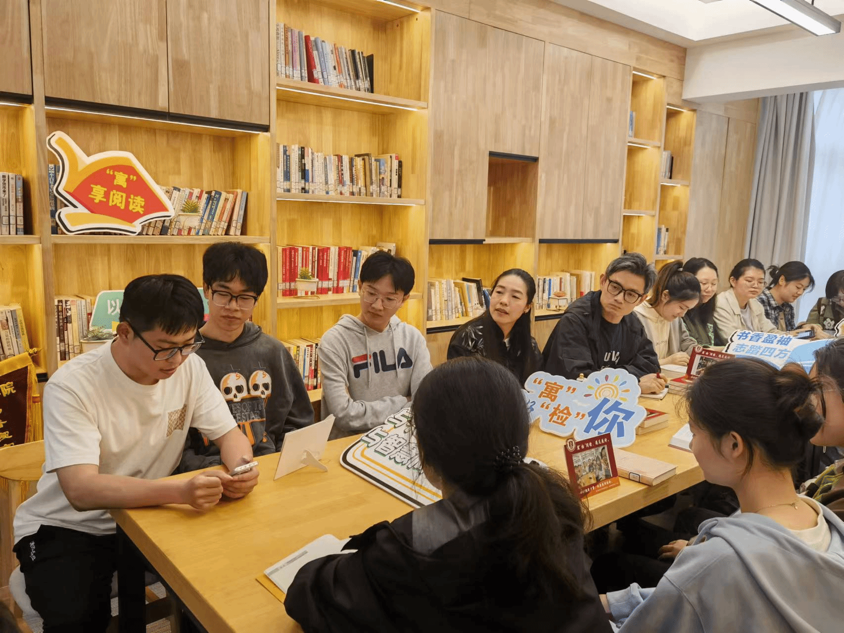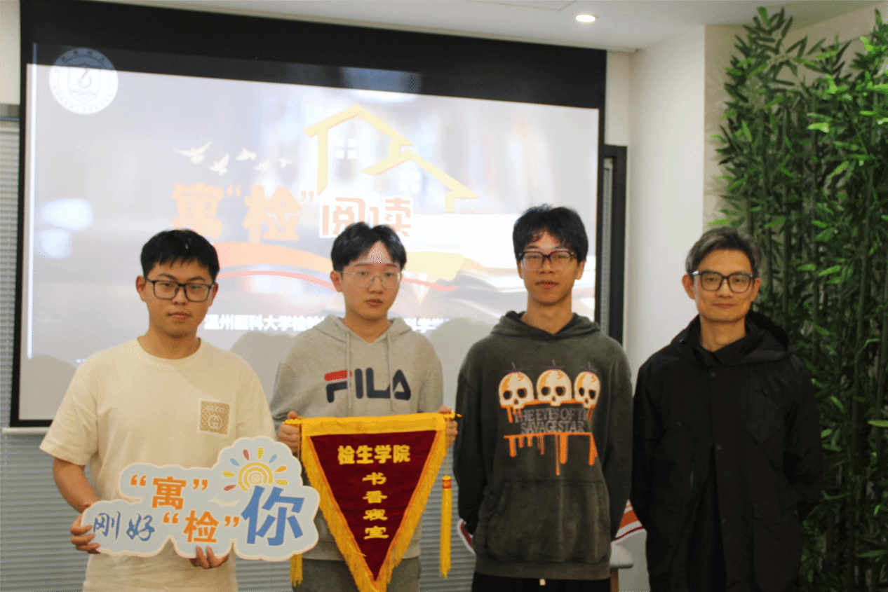 于4月22日在学生公寓我家客厅举办“寓’检’阅读 遇见美好”师生读书分享会。此次活动邀请了不同年级不同专业的4个书香寝室的同学参加,院党委副书记余信丰、院妇联副主席潘亮亮、团委书记吴东方老师参与活动。
