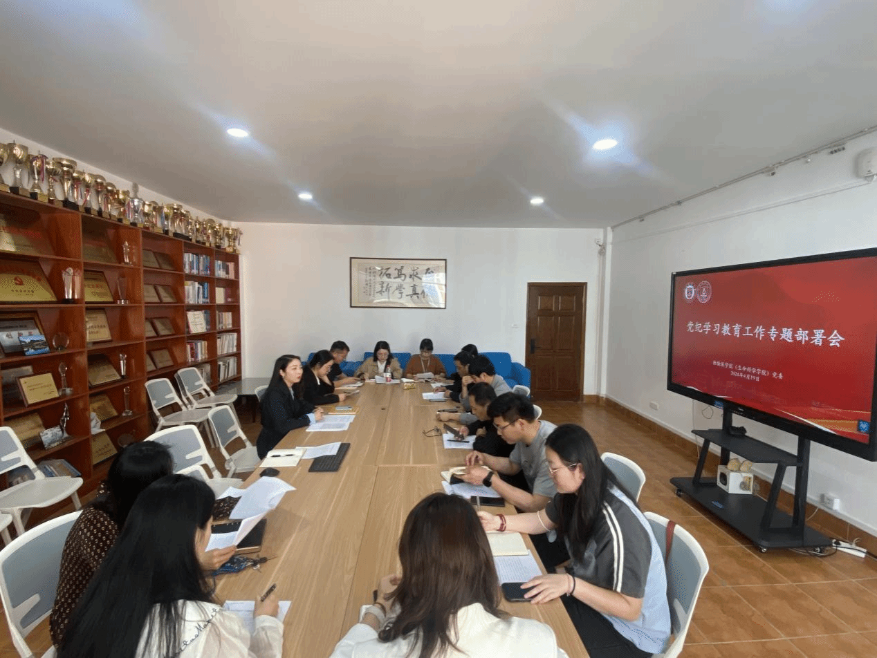 召开党纪学习教育专题工作部署会,传达学习习近平总书记重要讲话重要指示精神和上级有关重要会议精神,研究部署学院党纪学习教育工作。会议由学院党委书记洪晓畅主持,学院各支部书记参加会议。