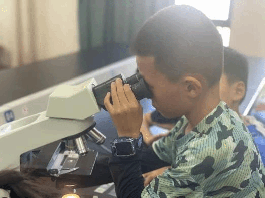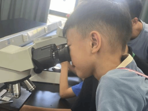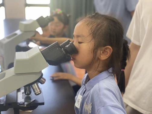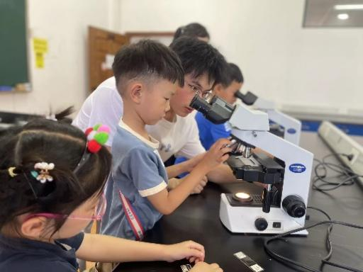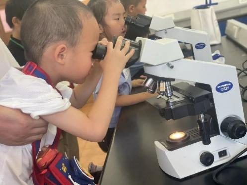 孩子们在实验平台老师们的带领下参观了实验室,并用显微镜观察了样本切片。在显微镜的世界里,孩子们看到了马蛔虫、蝗虫、洋葱根尖……孩子的眼中一切都变得那么的不可思议,孩子们也感受到了科学实验的神奇和科学探索的乐趣,也许科学的种子就此生根发芽。