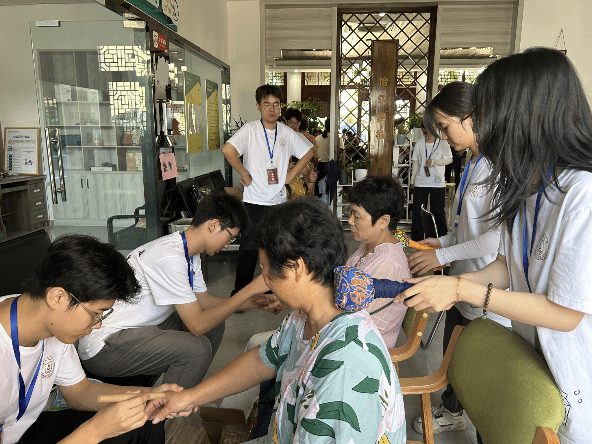 在实践团成员的陪同下,余信丰副书记一行参观并体验实践团开展的系列爱心义诊活动。实践团成员们熟练的操作和良好的服务态度得到了村民的一致认可和赞许。同时,实践团邀请皇冠娱乐