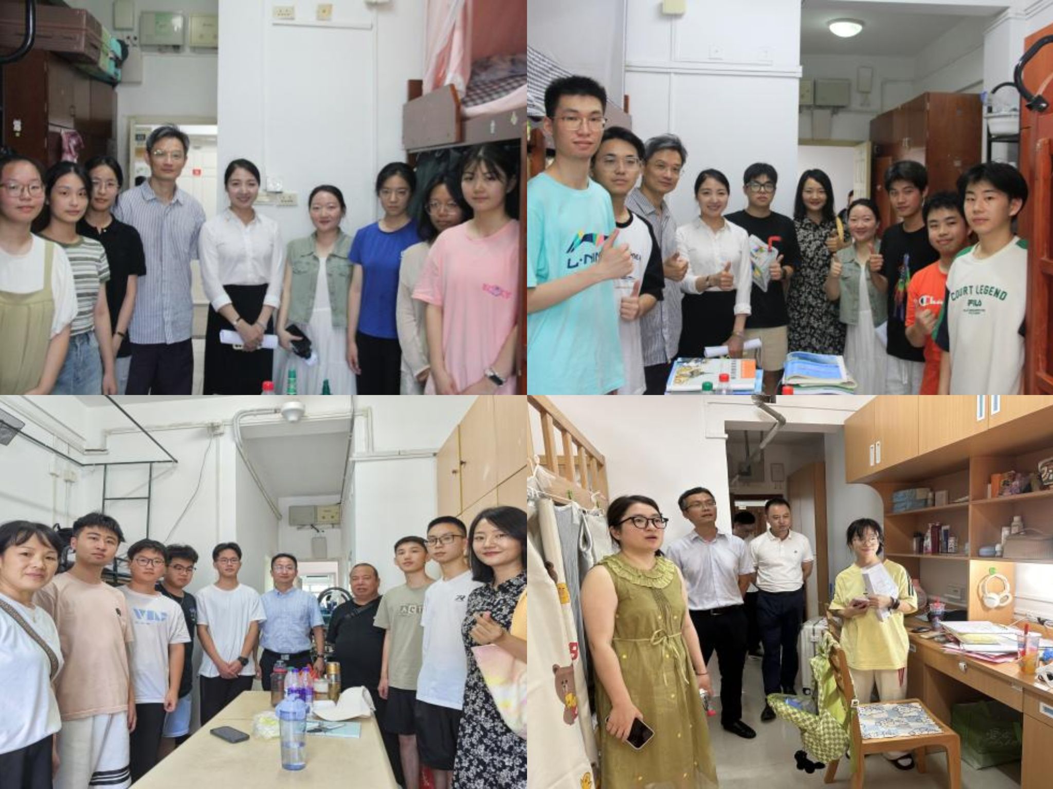 党政领导班子以及研工办、学工办全体辅导员走访新生寝室进行慰问关怀,与同学们“拉家常、聊近况、话规划”,拉近师生距离,现场气氛轻松愉快。洪晓畅书记详细询问了同学们生活需求以及对新环境的感受。她特别关注新生们的学习计划和未来规划,鼓励大家珍惜大学时光,制定目标,积极融入校园生活,多向老师、学长学姐请教,提早规划职业发展方向,努力成为全面发展的优秀人才。