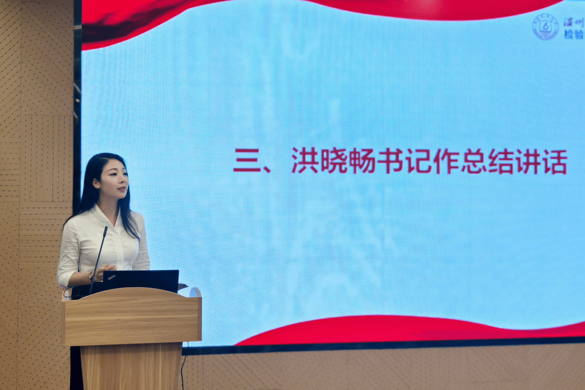 洪晓畅书记作总结发言,她希望全体教职工能够在奋斗的过程中获得更多幸福感,每一位老师的辛勤工作都能获得收获和喜悦;希望各位老师之间有更强的连结感,学院领导班子将进一步推进办实事走深走实,把解决问题落到实处;希望大家在工作中获得安全感,洪晓畅向全体教职工宣讲了马克思主义宗教观以及师德师风警示教育案例,并指出各位老师要坚持党纪、法规的学习,守住师德师风底线和实验安全底线。洪晓畅书记强调,全体教职工要一起做学院发展路上的同行者,建设更有特色、更有温度的检生学院,助力学院高质量发展。