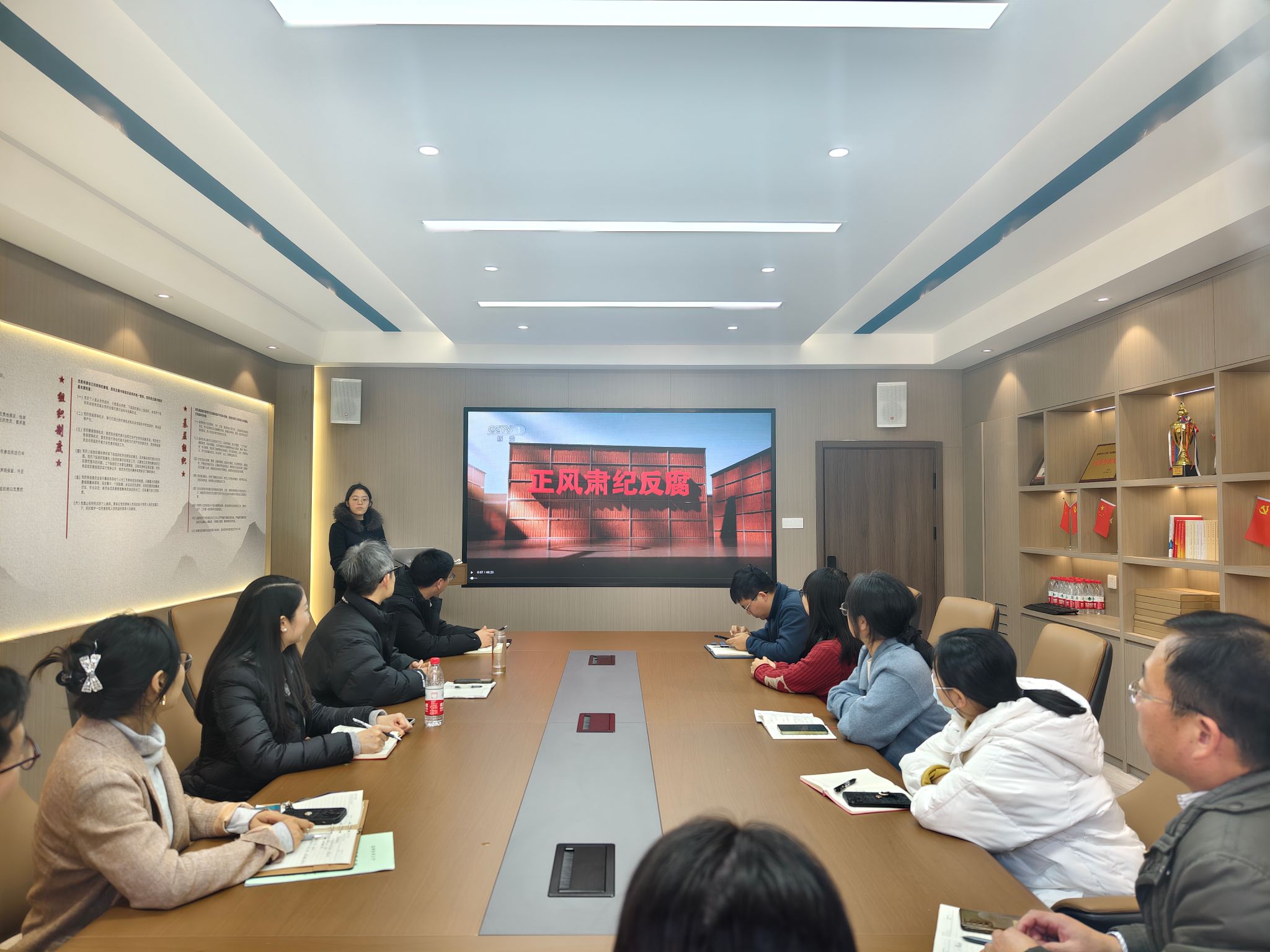 会后,与会人员一同观看中央纪委国家监委反腐教育专题片。