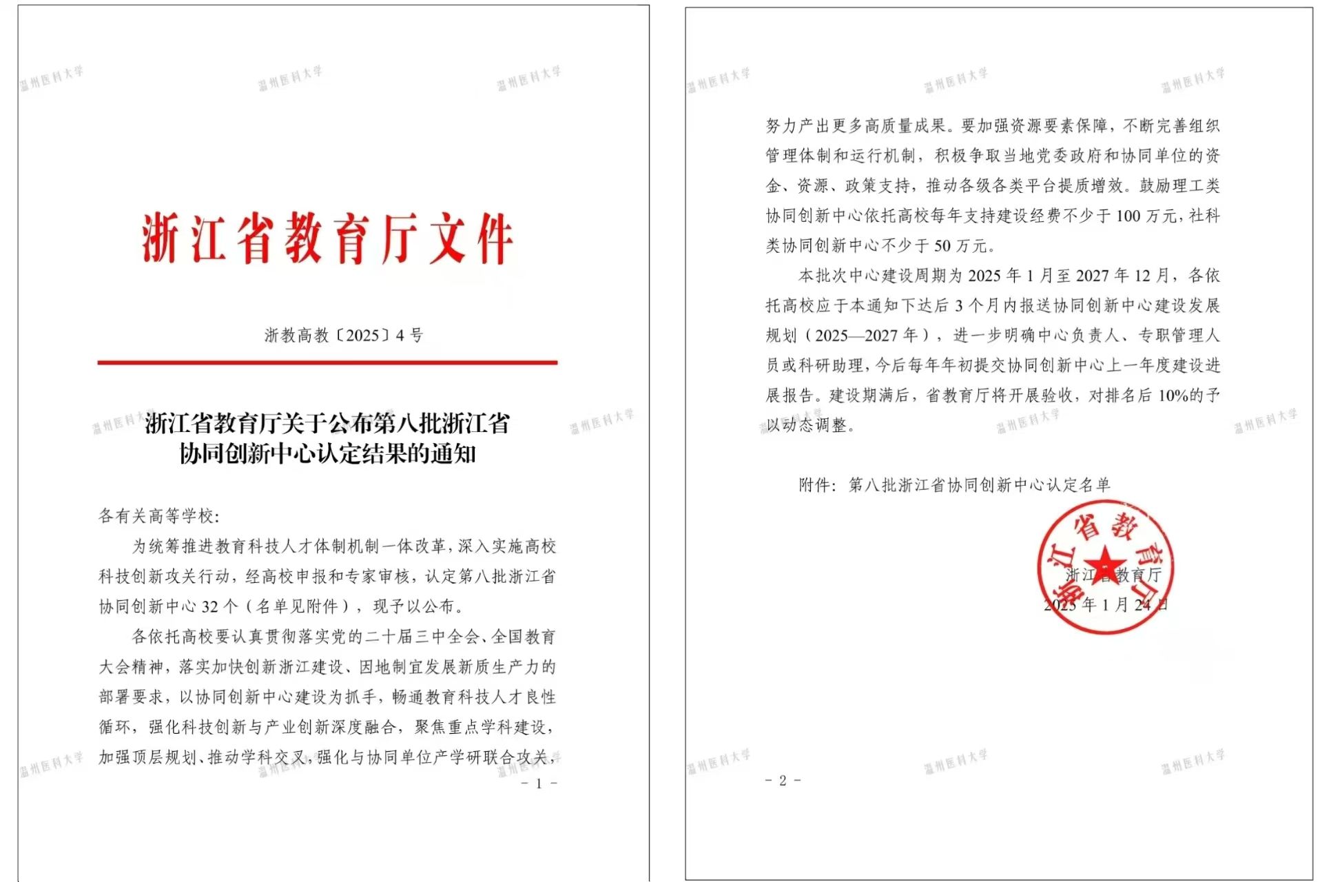 近日,浙江省教育厅公布第八批浙江省协同创新中心认定结果,由皇冠娱乐