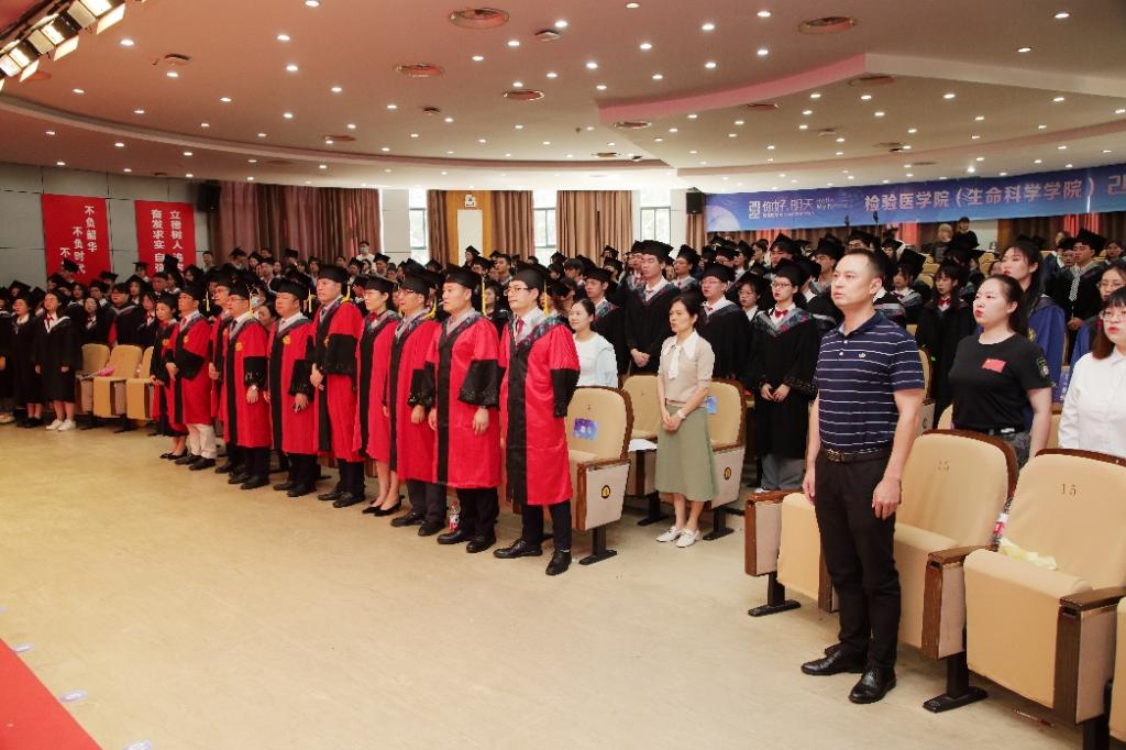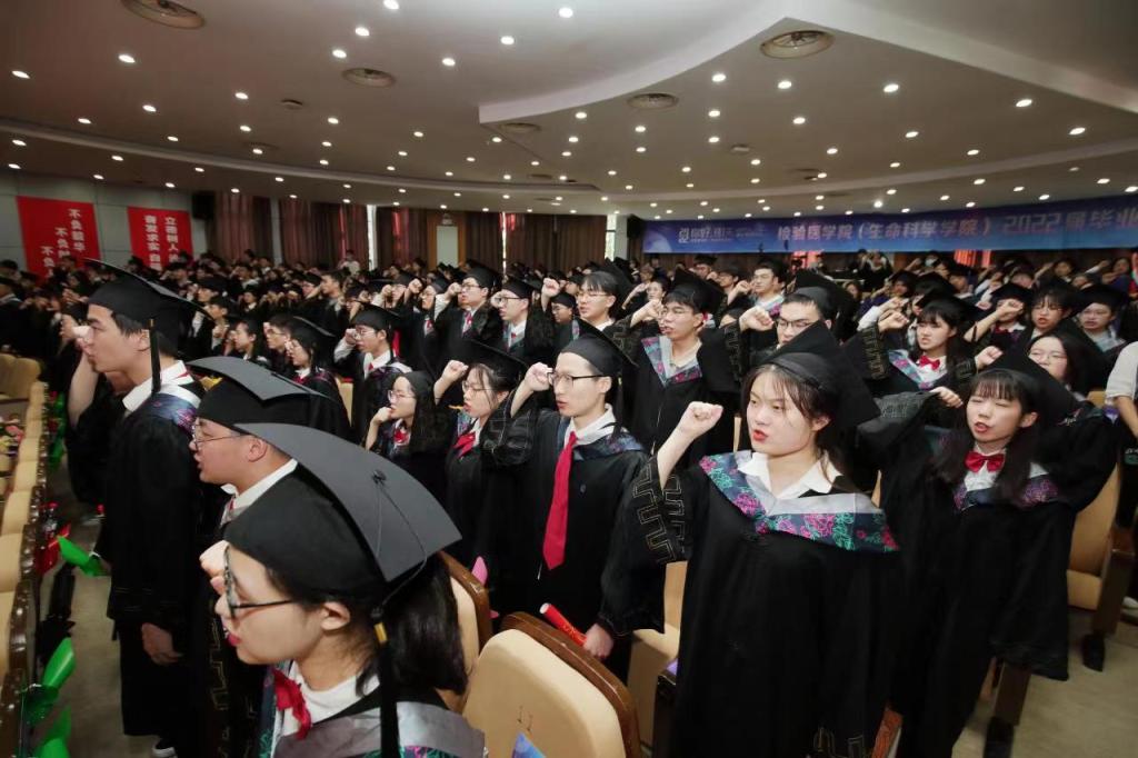 毕业礼将近尾声,在即将告别大学生活之际,全体毕业生再次重温院训:“检以正德,验以求真,生而笃学,命之拓新……”慷慨激昂的院训精神将永远激励着毕业生们砥砺前行。