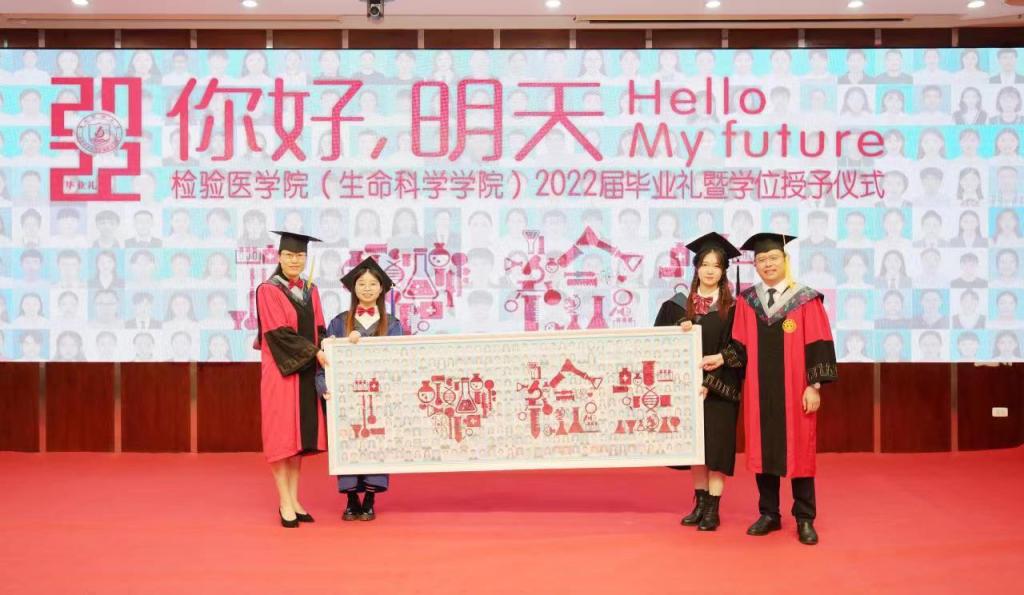 在毕业礼的诗歌朗诵《致我们终将到来的明天》中,毕业生们结合自己的大学生活,围绕学生工作、考研、志愿、篮球、国护等主题,真实讲述了自己的青春足迹,引起了师生们的强烈共鸣。同时,他们饱含深情地抒发了自己对学院的热爱,并祝福2022届所有毕业生前程似锦、未来可期。