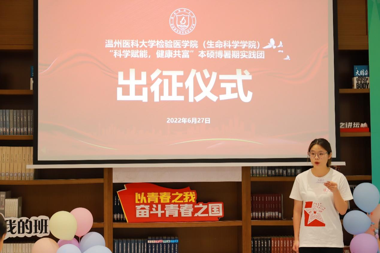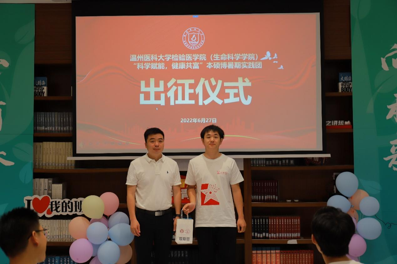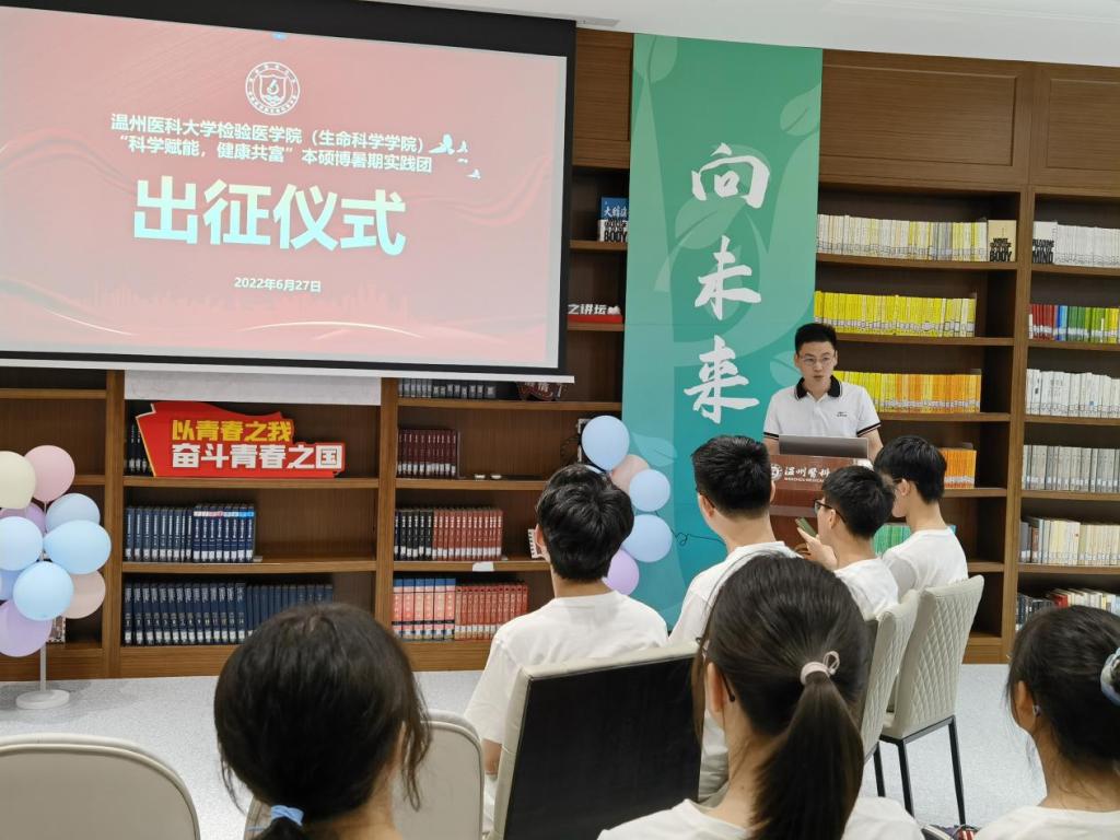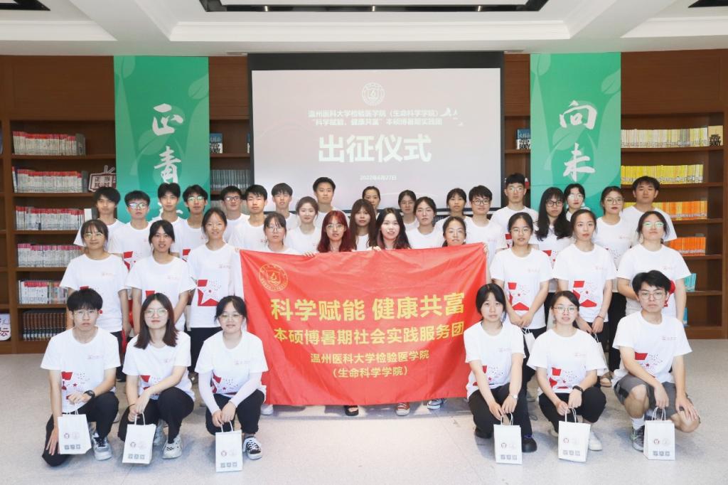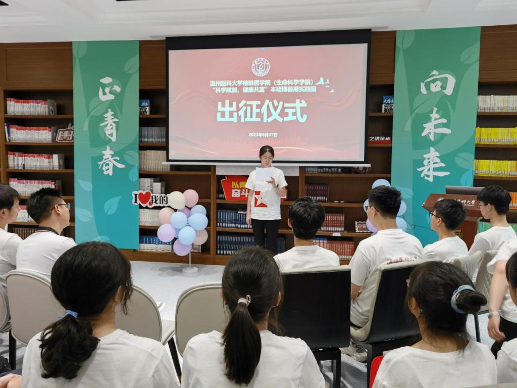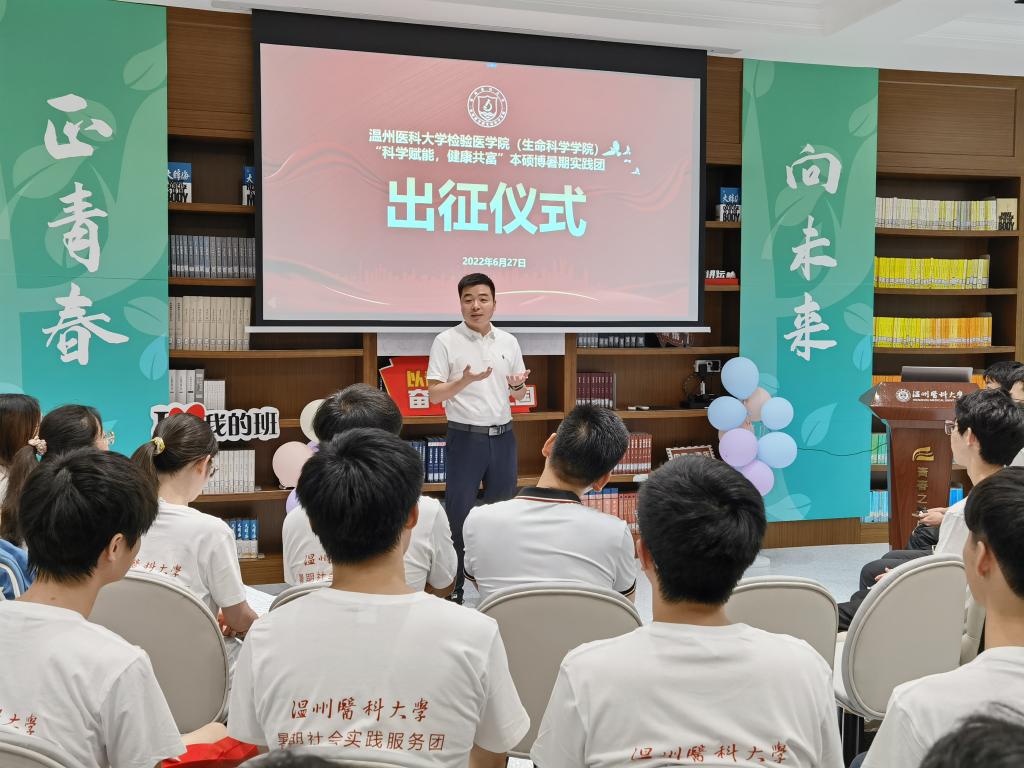 “科学赋能 健康共富”暑期社会实践团出征仪式在图书馆青春之书房举行,院党委副书记陈贤新、暑期实践团指导老师吴东方、黄小彪及全体实践团成员参加此次出征仪式。