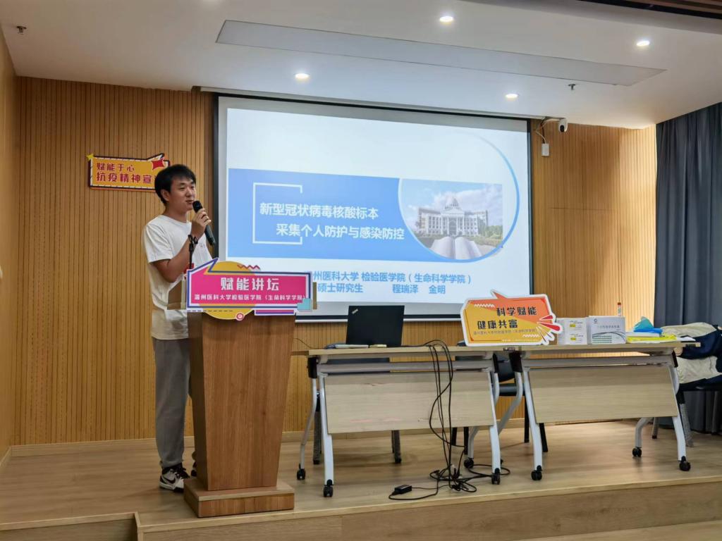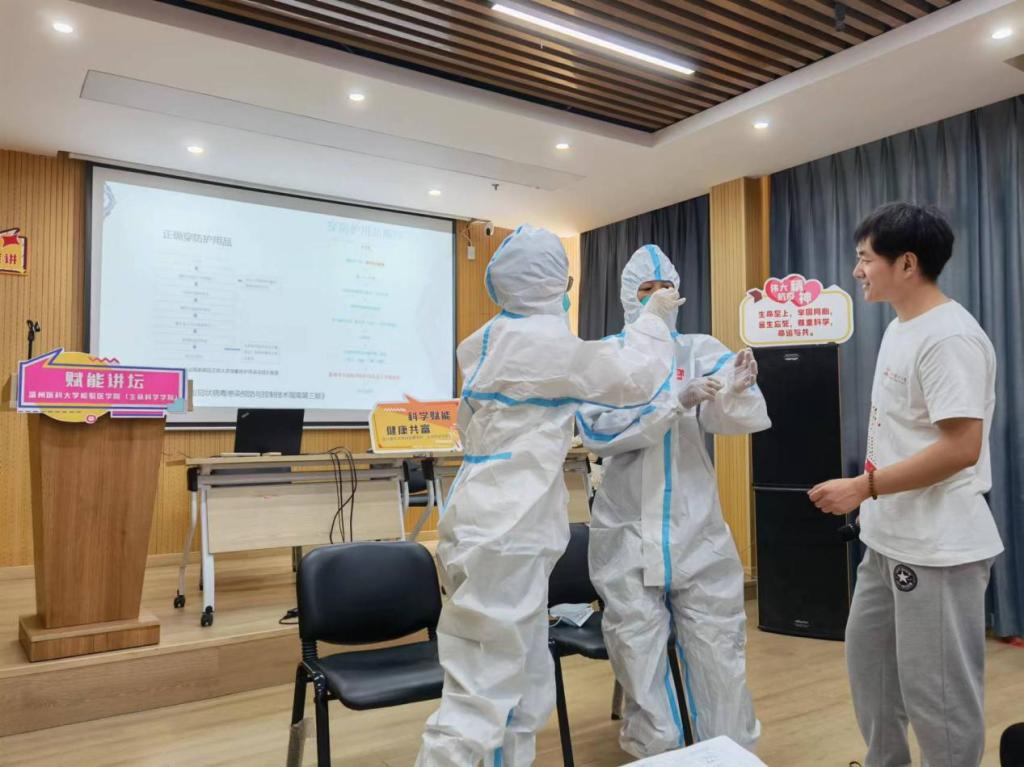 “科学赋能 健康共富”实践团发挥专业优势开展赋能讲坛,6月30日上午在龙湾万顺社区主要围绕急救技能、科学精准防疫进行宣讲,提升居民的健康素养知识和技能。