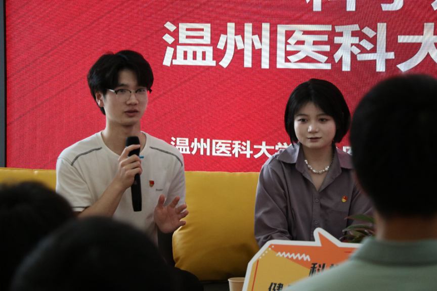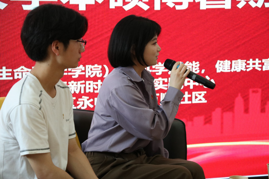 实践团把学院品牌活动“检生青年说”搬到龙湾区新时代文明实践中心二楼礼堂,开展社区党员面对面交流会,“90后”教师党员杨慧敏、“00后”毕业生党员朱雪伦出席本次活动。