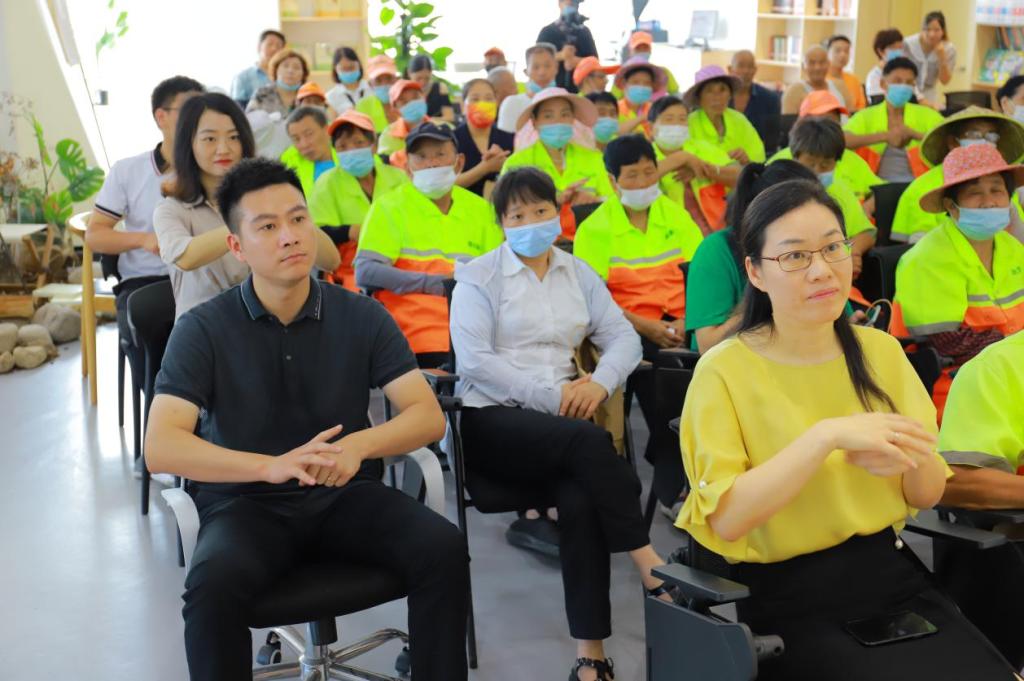 暑期社会实践团成员。他们参观了万顺社区党群服务中心,并体验实践队员开展的义诊和赋能宣讲活动;随后管素叶书记一行人来到龙湾区新时代文明实践中心文乐书房,观看实践队员面向清洁工和物业开展的科学防疫赋能讲坛。