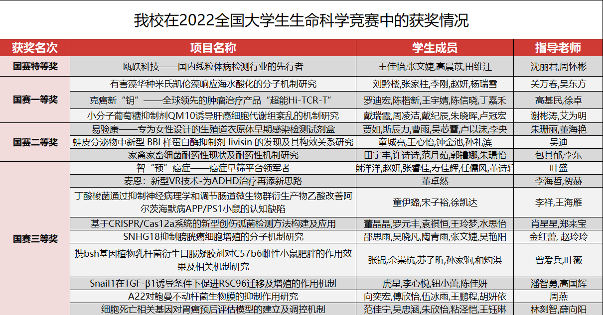 2022年全国大学生生命科学竞赛获奖情况