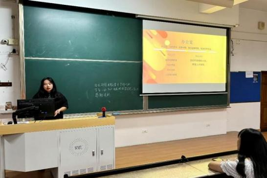 开班仪式结束后进行第一次理论培训,学生会办公室副主任陈楷新围绕财务报销这一主题,用具体的案例说明了如何有效处理各类支出,分辨各类财务报销之间的区别。团委副书记王安民讲解了文件通知的要求和规范,举办活动时的实用小技巧。除此之外,她重点详细地讲解了关于活动策划及各类文件的知识,以过来人的身份,分享了修改文稿的经验。