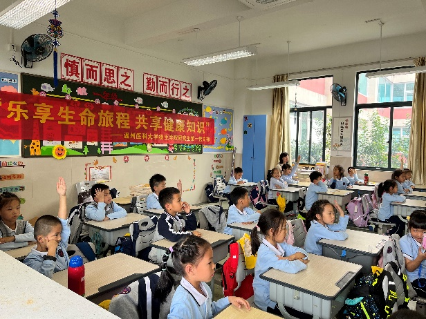 研究生第一党支部在支部书记林虹老师和团委副书记吴东方老师的带领下,走进了温州大学城附属小学一(5)班,开展了一次以“乐享生命旅程,共享健康知识”为主题的健康知识进课堂的宣传活动。