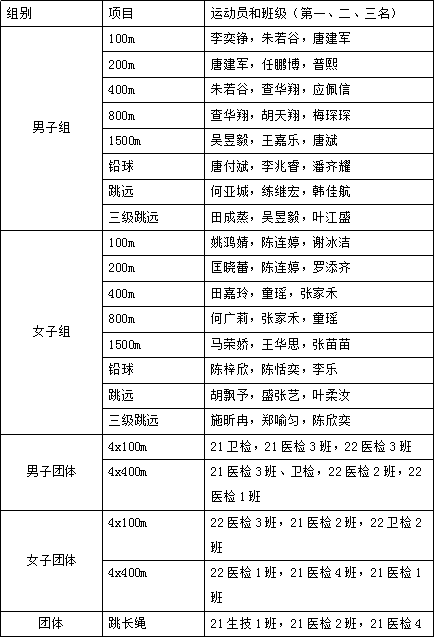经过两天紧张激烈的角逐,院运会获奖情况产生如下: