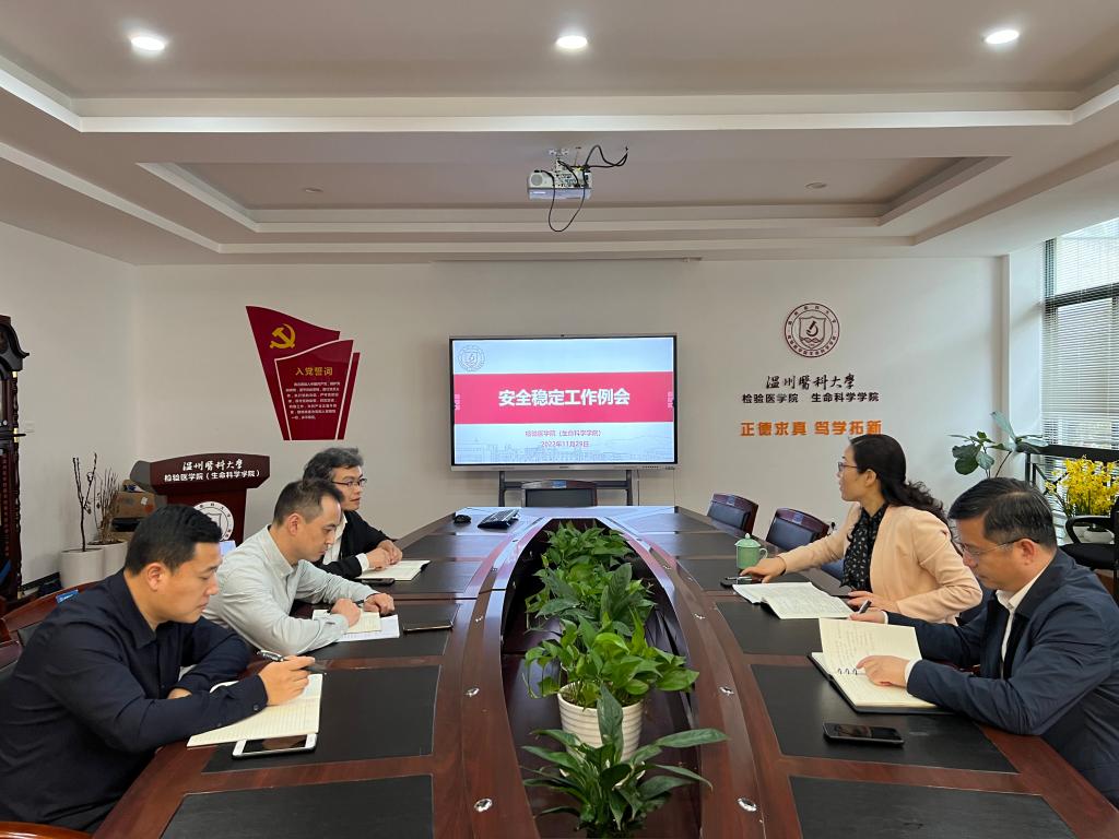 于7A327会议室召开安全稳定工作例会,学院党政班子成员参加会议。学院党委书记管素叶主持会议。