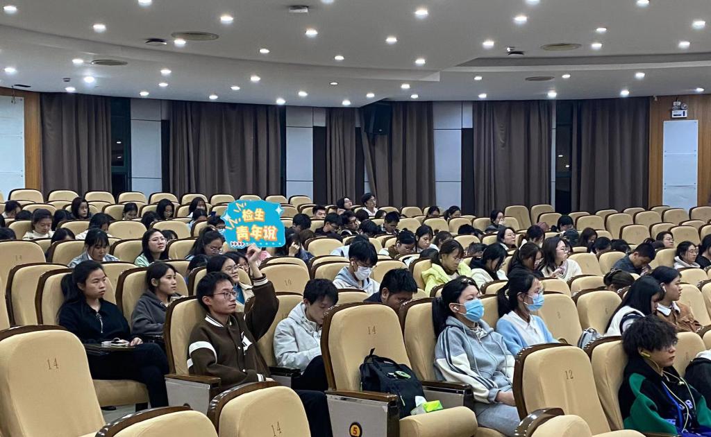 团委在旭光厅举办了检生青年说暨求真科创领航活动,邀请20级医学检验技术张祺钧同学来分享他的科创经历与体会。