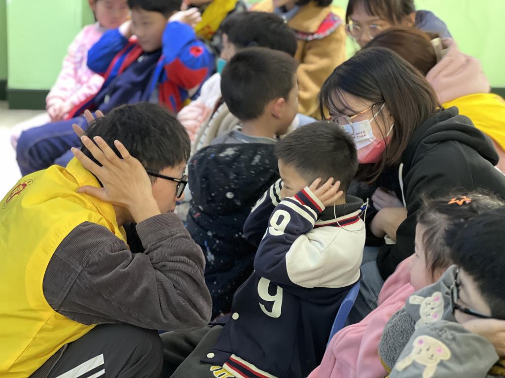 “我有护耳好习惯”护耳操学习。为增强小朋友的护耳、爱耳意识,帮助他们舒缓耳部疲劳,志愿者耐心演示了护耳操的详细步骤,并及时纠正小朋友们的错误动作,帮助小朋友们真正学会护耳操。