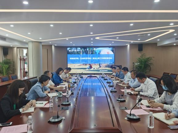 就业心理工作。人事处处长楼永良、检验医学院(生命科学学院)执行院长郑晓群、党委副书记陈贤新、学工部心理健康与发展办公室、学工部就业指导服务办公室和检验医学院(生命科学学院)学生工作团队参加调研座谈。