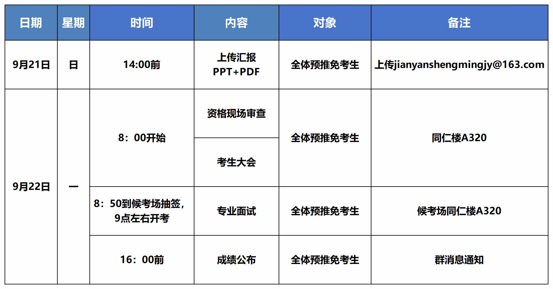 六、复试日程安排简表