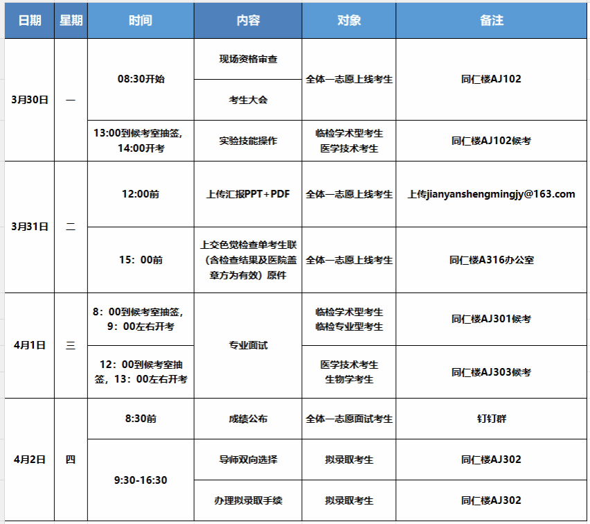 注:汇报PPT需同时制作成PDF版本,两者(PPT+PDF)放至一个文件夹并以报考专业+姓名+考生编号命名,于3月31日(周二)中午12:00前打包发送到jianyanshengmingjy@163.com,材料一经发送,不接受修改。如日程安排有变则另行通知。