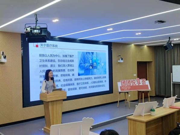 活动伊始,全体团干部面对着鲜红的团旗,高声齐唱团歌《光荣啊,中国共青团》,充分展现了团干部们奋发向上的精神面貌。2020级医学检验技术专业2班团支书郑吴晓围绕支部建设、支部成果、支部特色等方面介绍了所在支部的工作和成就,并分享了培养团支部凝聚力的实用技巧。2021医学检验技术专业4班的团支书王方昕分享了举办主题团日活动的经验,她从团日活动选题、寻找资源支持、实施开展和宣传报道等方面进行详细分享,并进行现场实际演练。
