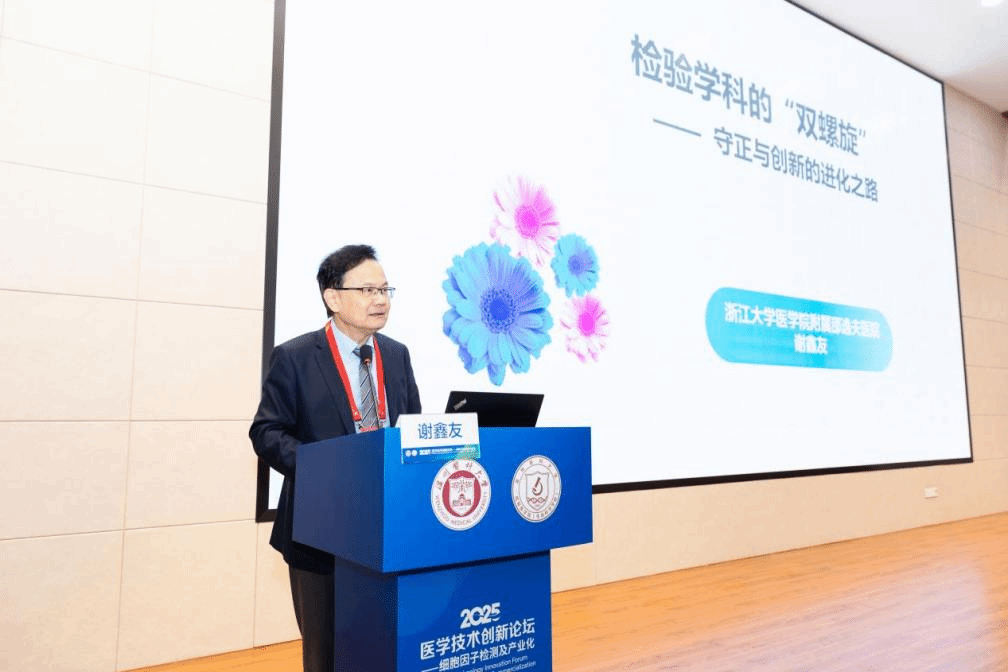 谢鑫友教授以“检验学科的‘双螺旋’——守正与创新的进化之路”为题,通过学科发展历程的回溯,分析了检验医学在坚守核心价值与探索新技术路径中的平衡与突破,阐述了检验医学在坚守临床价值的同时,通过技术创新推动学科升级路径。